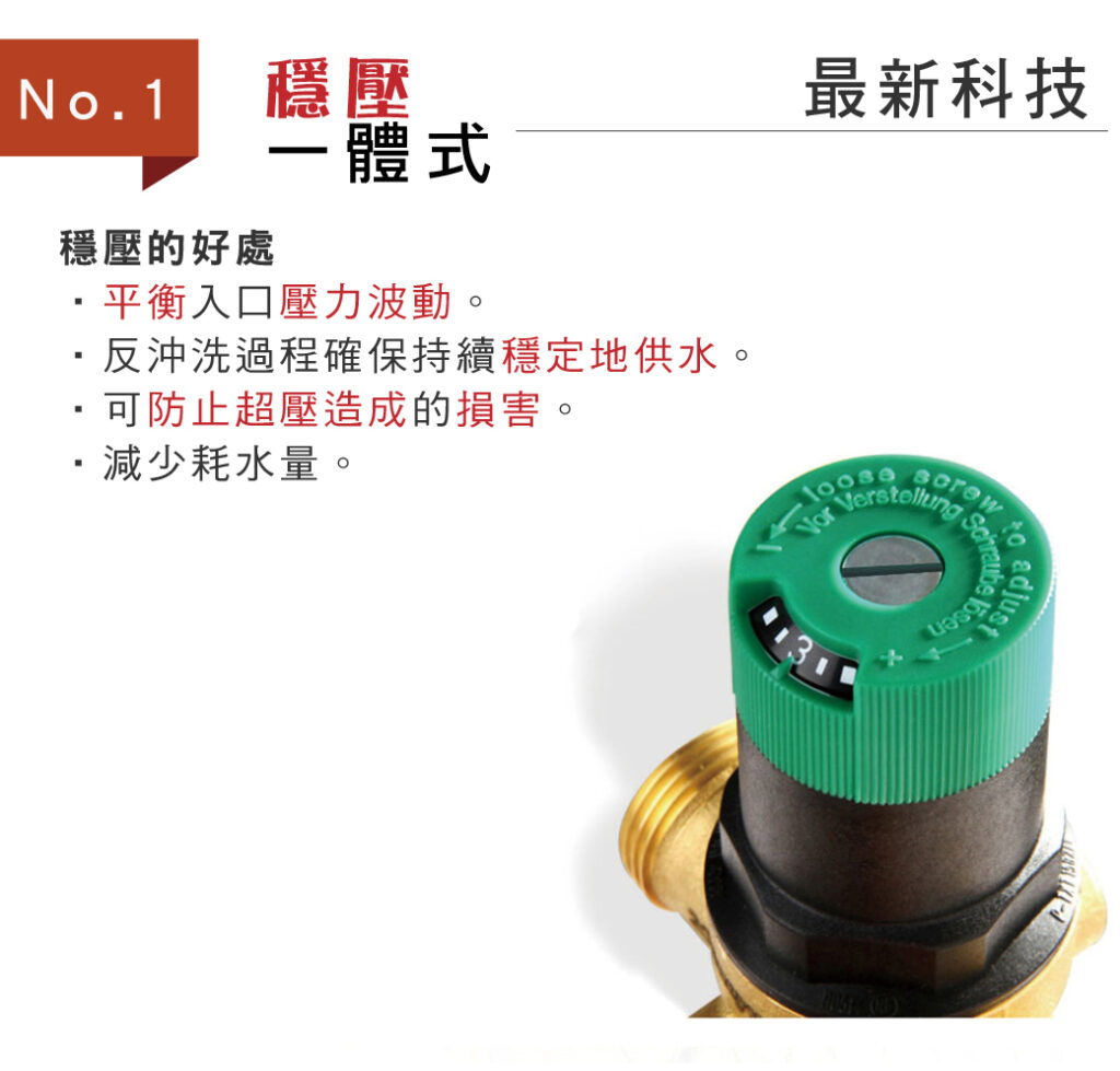 產品特性: 1.穩壓一體式設計 2.過濾面積大 3.可調節水壓 4.防脫鋅黃銅閥體 5.孔徑為100μm
