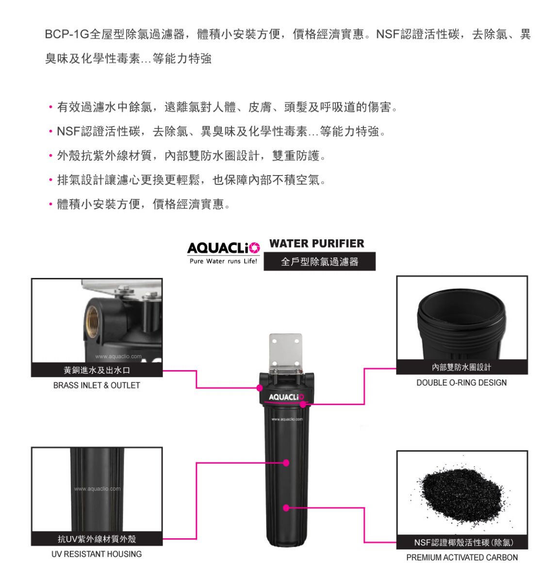 內容: AQUACLiO克麗歐雜質過濾器,體積小安裝方便,價格經濟實惠。超大百葉式濾心,泥沙雜質過濾面積大不易阻塞 •有效過濾水中泥沙、顆粒雜質...等汙染物,保障全家人生活用水健康。 •超大百葉式濾心,過濾面積大不易阻塞。 •外殼抗紫外線材質,內部雙防水圈設計,雙重防護。 •排氣設計讓濾心更換更輕鬆,也保障內部不積空氣。 •體積小安裝方便,價格經濟實惠。