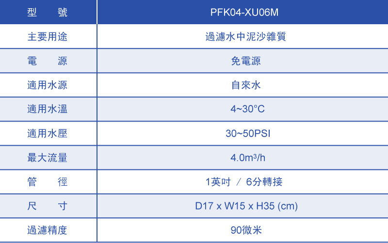 內容: PFK前置雜質過濾器,不鏽鋼精密濾網高效攔截水中泥沙、顆粒雜質...等汙染物,反沖+刮洗功能保障水質安全,並延長濾網使用壽命。內建壓力監控,使用更安心 ✓. SUS不鏽鋼精密濾網,高效攔截水中泥沙、顆粒雜質...等汙染物,保障全家人生活用水健康。 ✓. 反沖+刮洗功能保障水質安全,並延長濾網使用壽命。 ✓. 抗菌黃銅本體,高耐壓性及耐腐蝕性。 ✓. 透明外殼設計,隨時掌握水質狀況。 ✓. 貼心的反沖洗記錄器,提醒反沖洗時間。 ✓. 內建壓力監控,使用更安心。 ✓. 免電源,節能又環保。 ✓. 360度萬向進出水口,安裝方便。 ✓. 歐洲進口,符合UNE 149101標準。