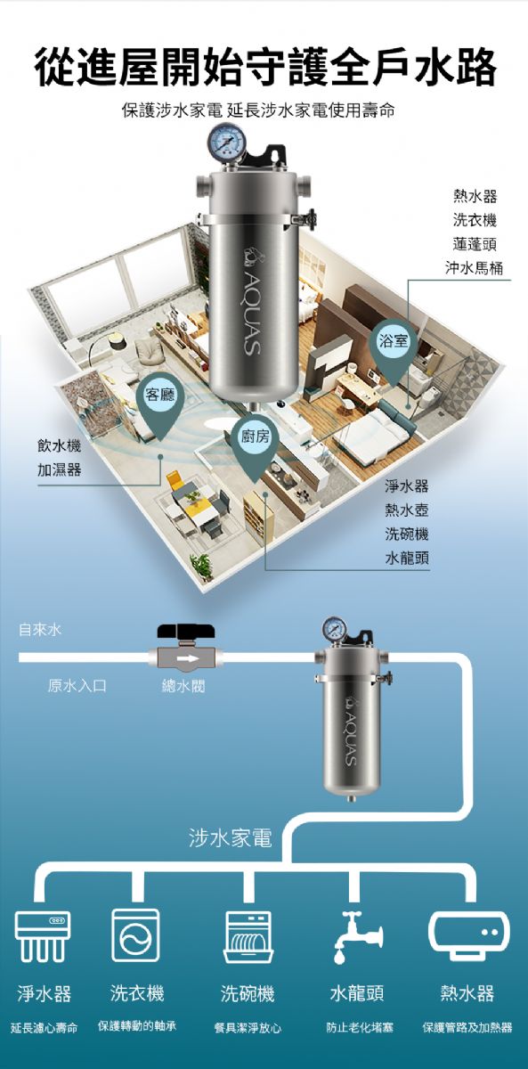 【淨工坊】AQUAS全戶不鏽鋼濾水器